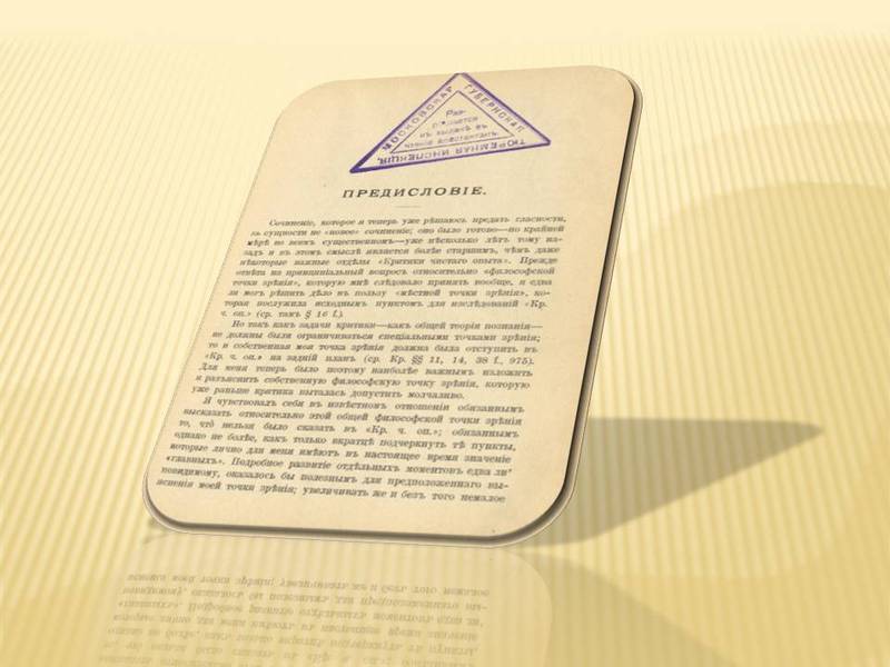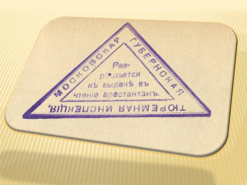 «Человеческое понятие о мире» швейцарского философа-идеалиста Рихарда Авенариуса (1843 – 1896) было напечатано в московской типографии замечательного русского издателя, публициста, театрального критика и писателя Алексея Сергеевича Суворина (1834–1912). Дата выхода издания – 1909 год. Примечательной особенностью этой книги является оттиск печати одной из государственных организаций царской России. «Московская губернская тюремная инспекция» – исправительный орган, просуществовавший в период с 1891 по 1917 годы. В центральной области оттиска читаем: «Разрешается к выдаче в чтение арестантам». В качестве примера приведём одно из предписаний этой инспекции, извлеченное из архива: «№ 74 Предписание Московской губернской тюремной инспекции начальнику Московской центральной пересыльной тюрьмы о высылке А. С. Антонова 24 июля 1910 г. Спешное. Тюремная инспекция дает знать, что Главным тюремным управлением сделано распоряжение о высылке содержащегося в Тамбовской тюрьме ссыльнокаторжного арестанта Александра Антонова, пытавшегося бежать из Тамбовской тюрьмы, причем у него были обнаружены подпиленные кандалы, для помещения его во вверенную Вам тюрьму. Инспекция предлагает установить за арестантом Антоновым особо бдительный надзор. Помощник инспектора Старший делопроизводитель Налётов». Уважаемые посетители музея! Нажмите на значок с вопросом в правом верхнем углу дисплея, и поучаствуйте в нашей викторине. Прочитав вопрос, выберите один из четырех ответов и узнайте правильный!