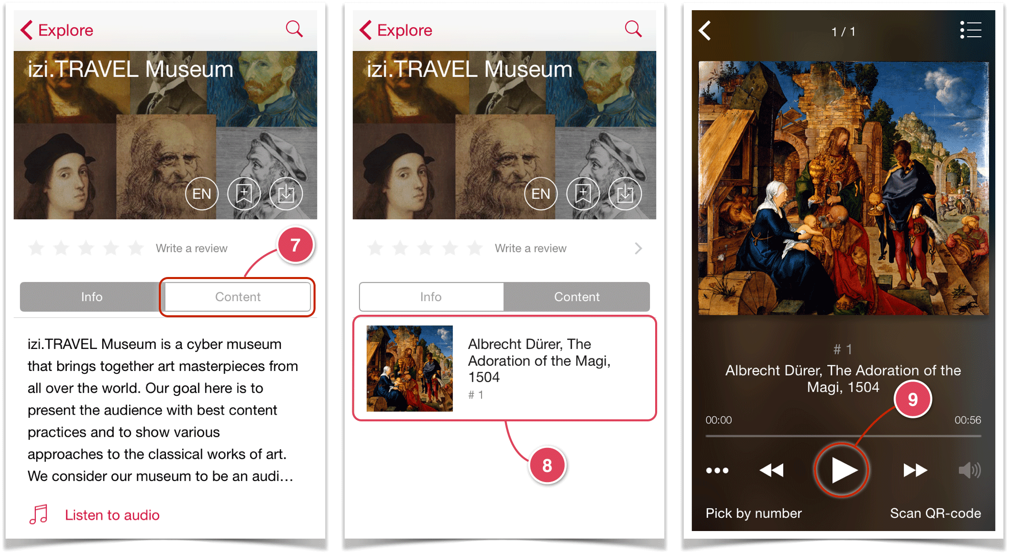 Para ver el museo creado, abra la audioguía móvil (izi.TRAVEL) en su iPhone.